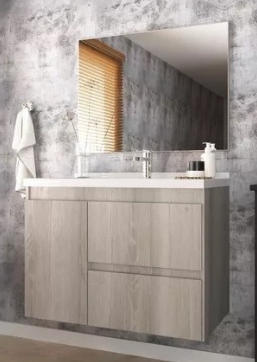 Fabricado en MDF de excelente calidad, viene con un espejo y con tapa de resina de mármol con bacha.
