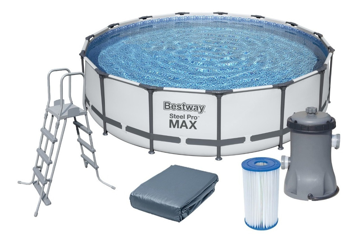 Incluye: Bomba filtrante 220V – 240V, Cartucho de filtro, Cubrepiscina, Escalera, Manual, Parche reparador