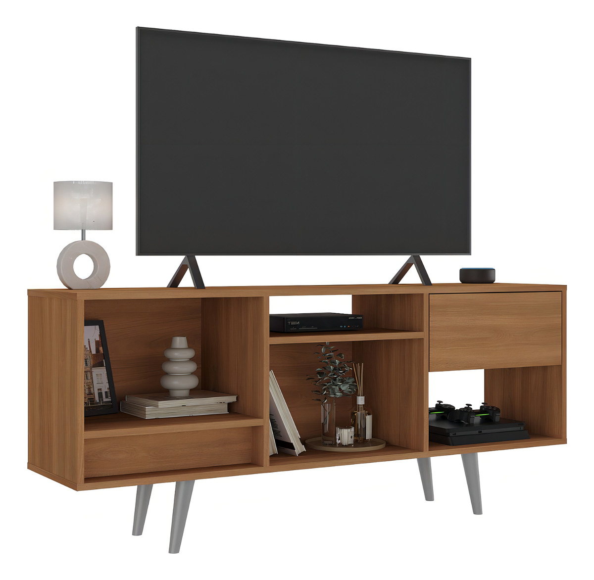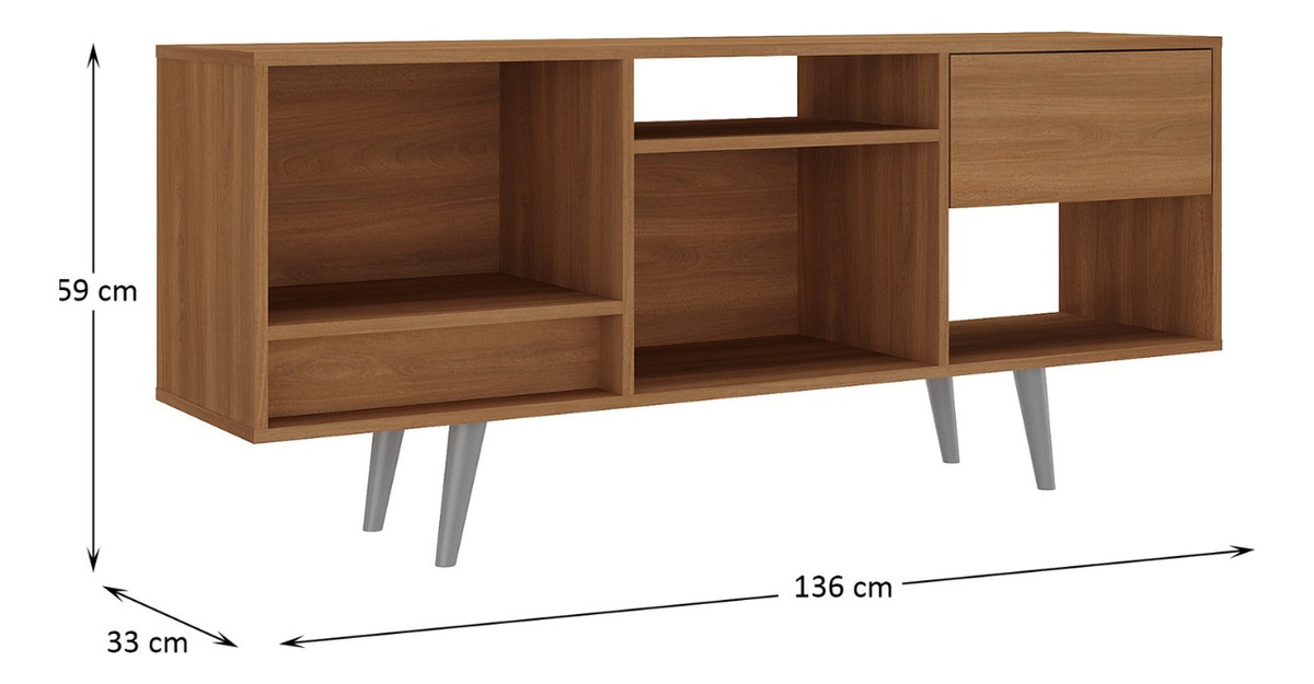 Rack Bajo Para Tv Con Cajón Rk-2111. Que Sal! Color Nogal