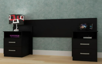 Este conjunto es perfecto para camas de 2 plazas, garantizando estilo en tu habitación. Mejora tu experiencia de descanso y organización con este elegante respaldo y sus mesas de luz, que se integran a la perfección en tu hogar.