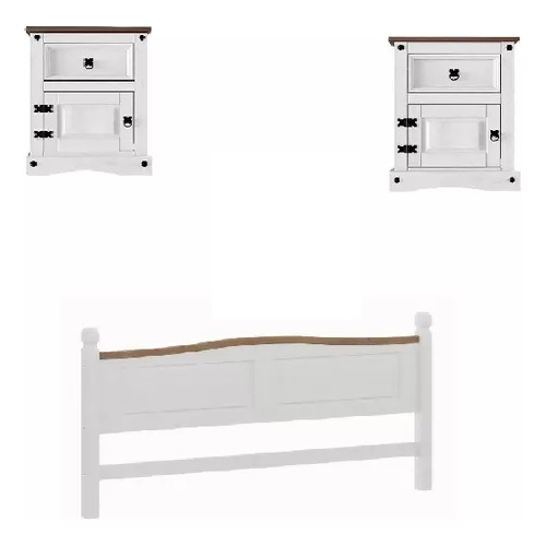Cómoda con 2 puertas y 3 cajones, color Blanco/Pinus