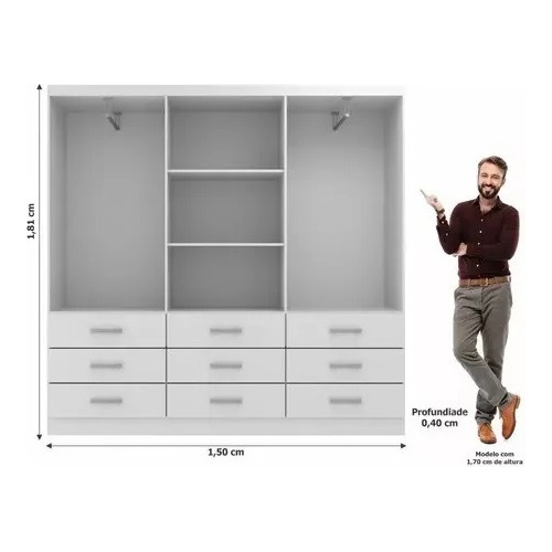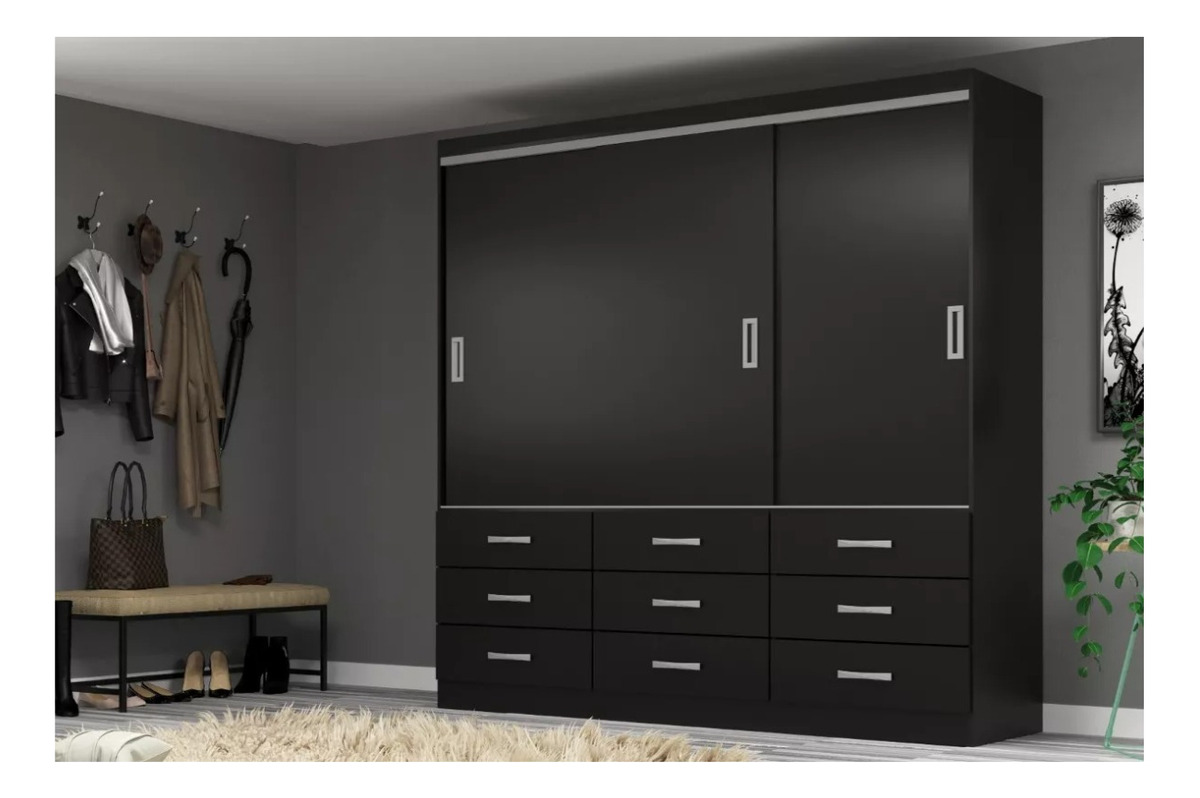 Ropero 3 Puertas Corredizas 9 Cajones Con Estantes – Negro