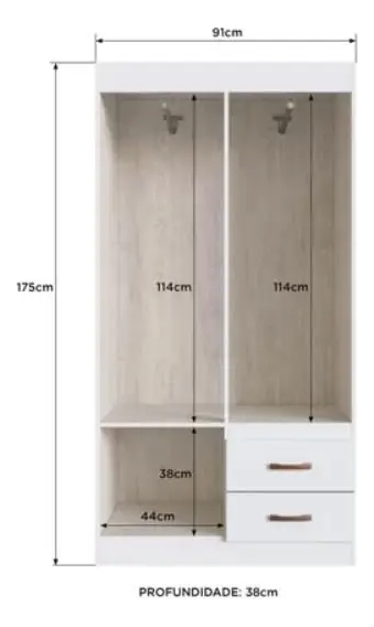 Medidas: 175cm altura x 91cm ancho x 38cm profundidad.