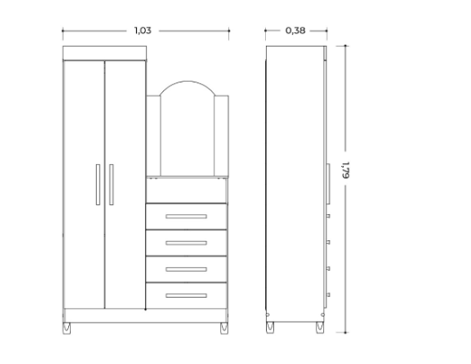 Gracias a su sistema Quadriflex, permite 4 opciones de armado en un mismo mueble, pudiendo elegir entre combinaciones de color Azul, Branco, Rosa y Titanium. ¡Se adapta al estilo que quieras sin cambiar de ropero!