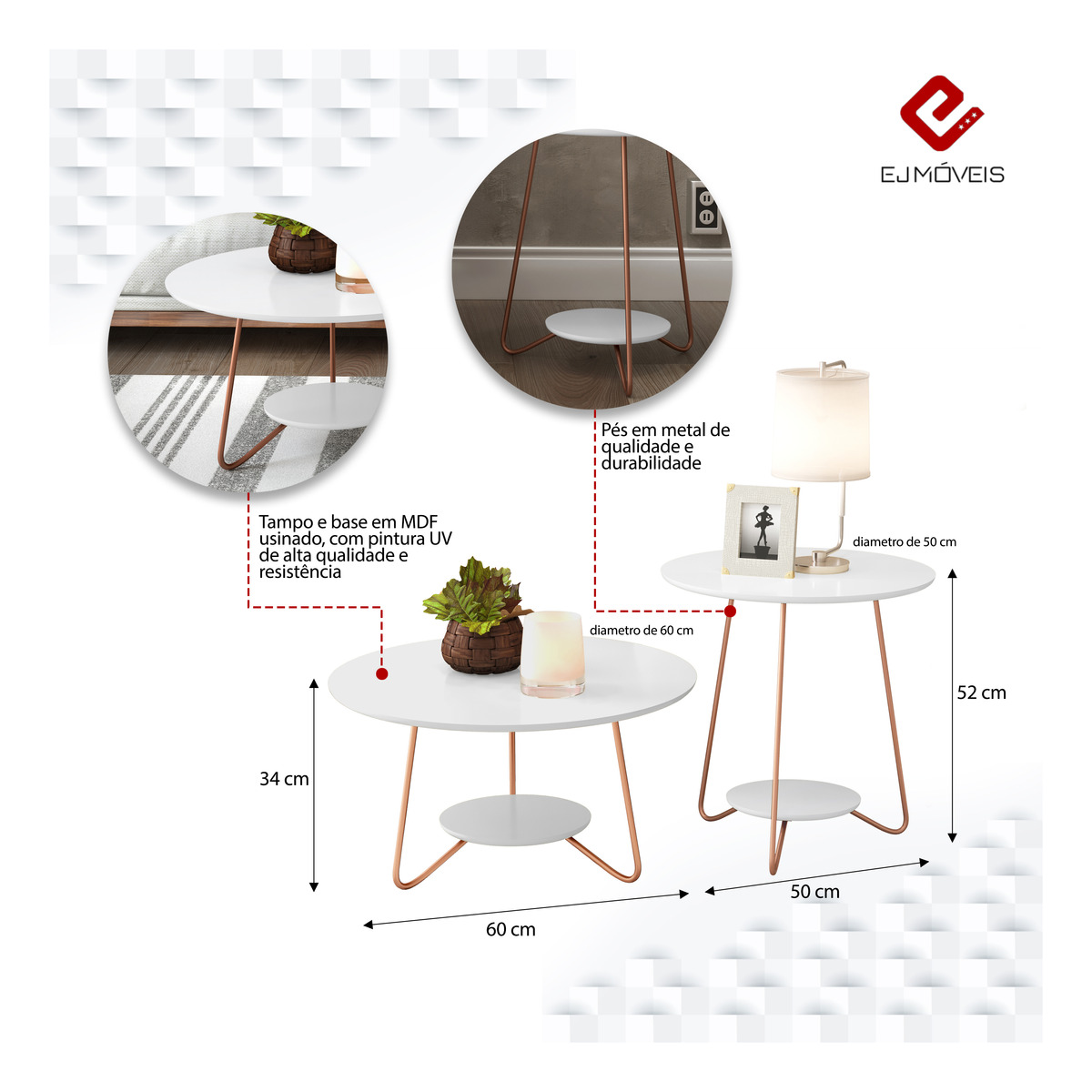Set Mesa Ratona + Mesa Auxiliar Lateral Living Estante Deco – Blanco