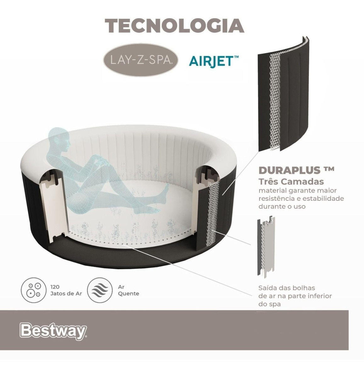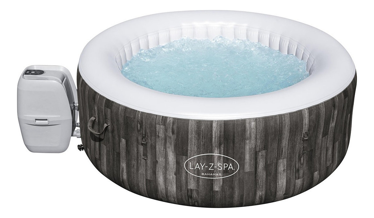 Spa de hidromasajes inflable Lay-Z-Spa Bahamas sistema AirJet, cuenta con 120 chorros que liberan aire caliente y te sumergen en un relajante masaje de burbujas.