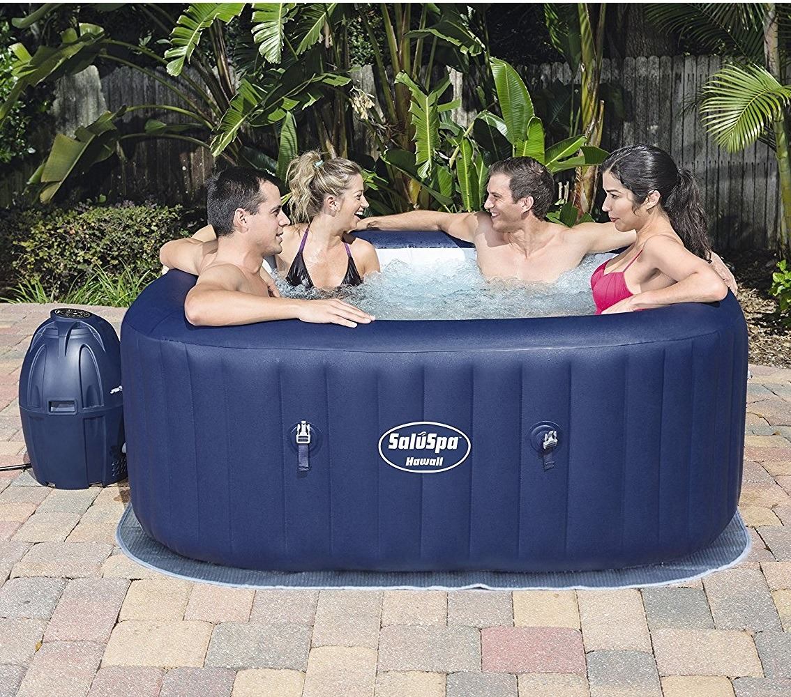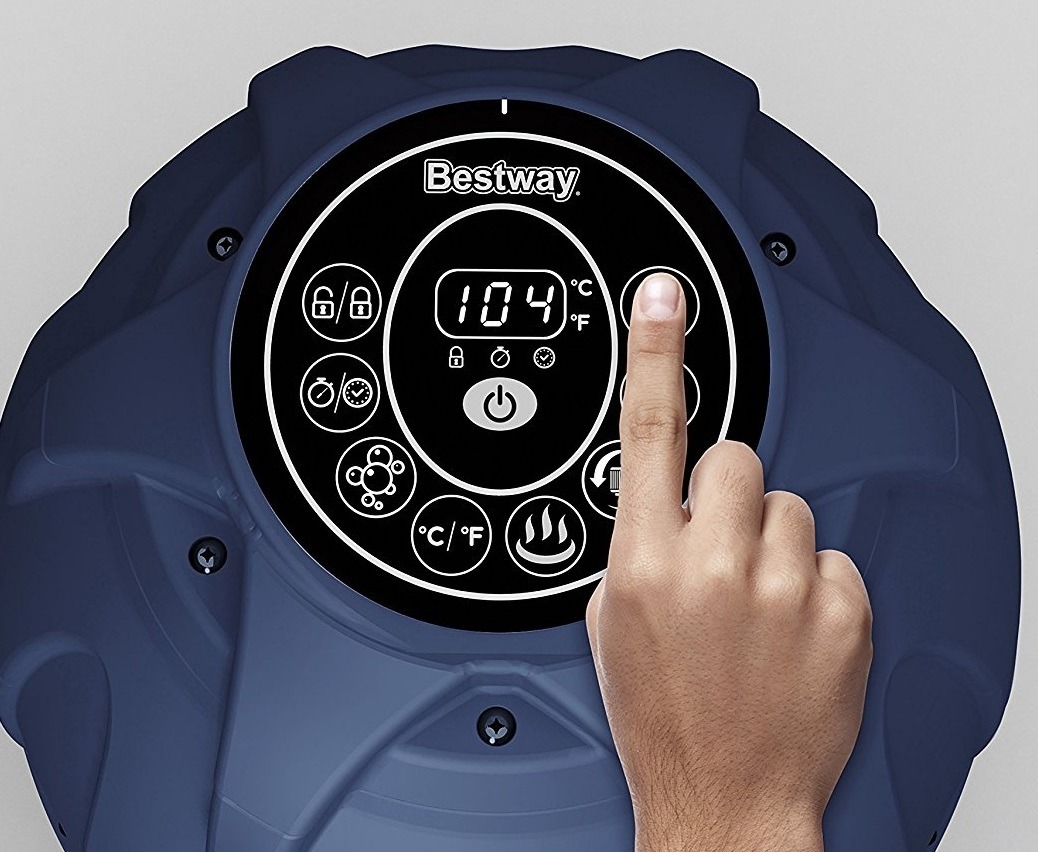 • Contenido: Revestimiento de piscina, cubierta de piscina, bomba de hidromasaje, flotador químico, manómetro de alta presión, cartucho de filtro (VI), protector de la almohadilla de aire, sistema AirJet™, kit de reparación, DVD