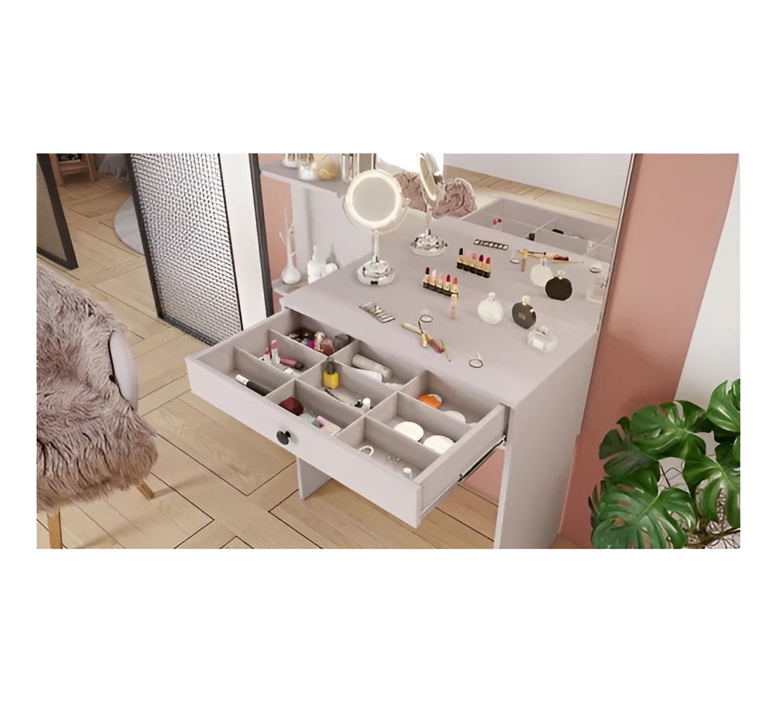 Tocador Comoda Con Espejo Alhajero Cajón Y Estantes Off White