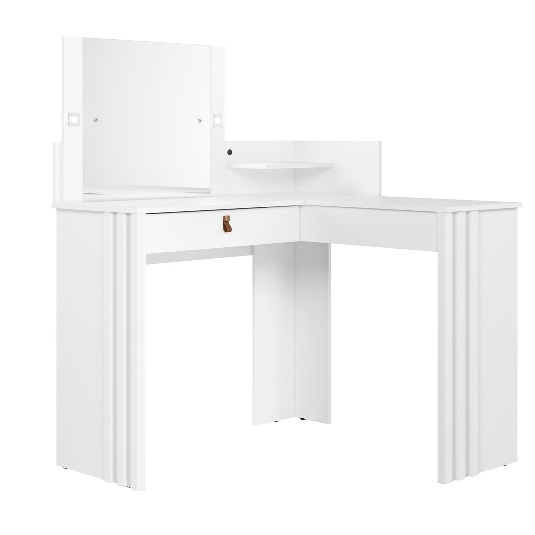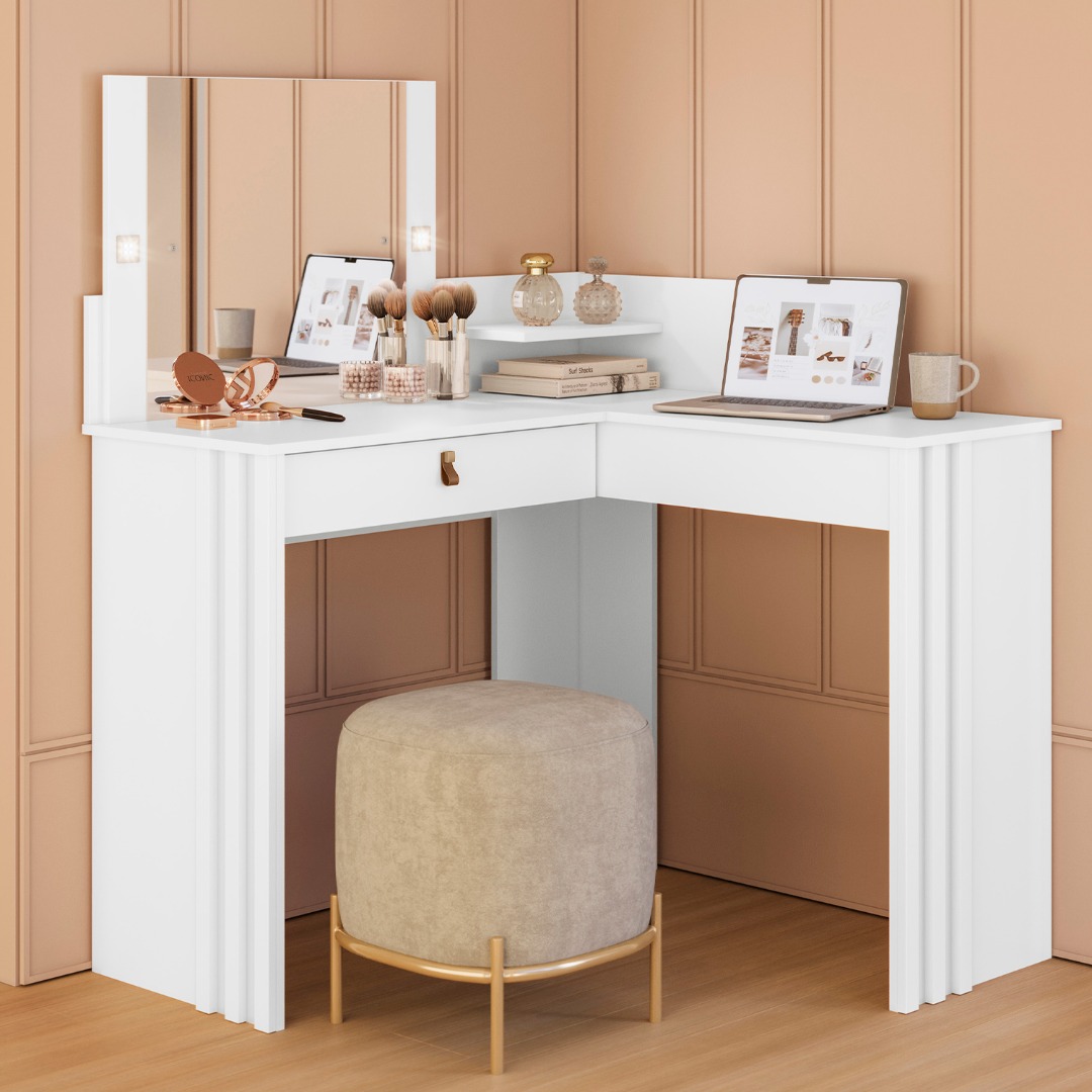 Si buscás un rincón especial para maquillarte, arreglarte o simplemente organizar tus productos, este tocador es la opción ideal. Su formato esquinero permite optimizar el espacio, adaptándose perfectamente a dormitorios o vestidores sin ocupar de más.
