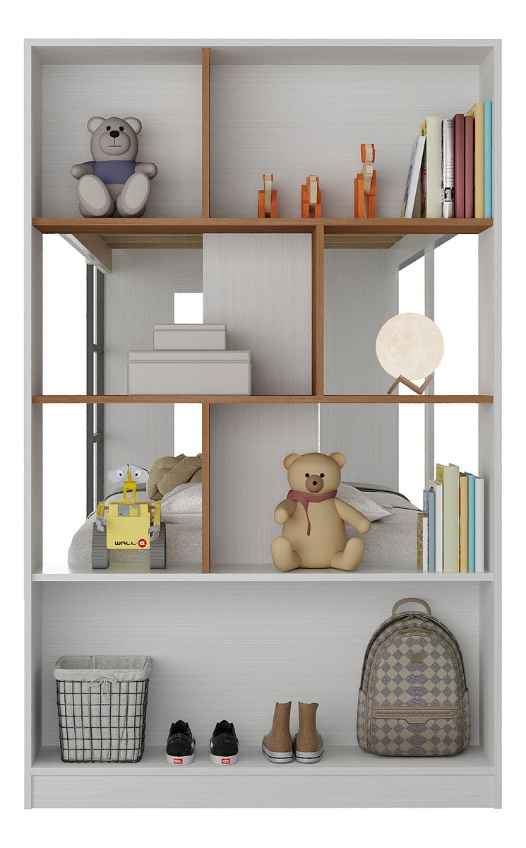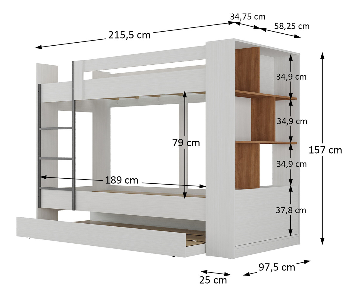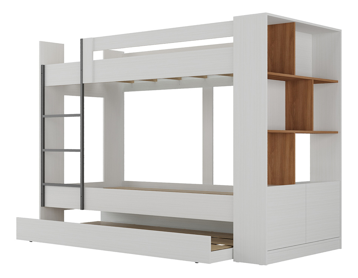 Tricama Cucheta Marinera Cama Biblioteca Repisa Multicama – Blanco/Nogal