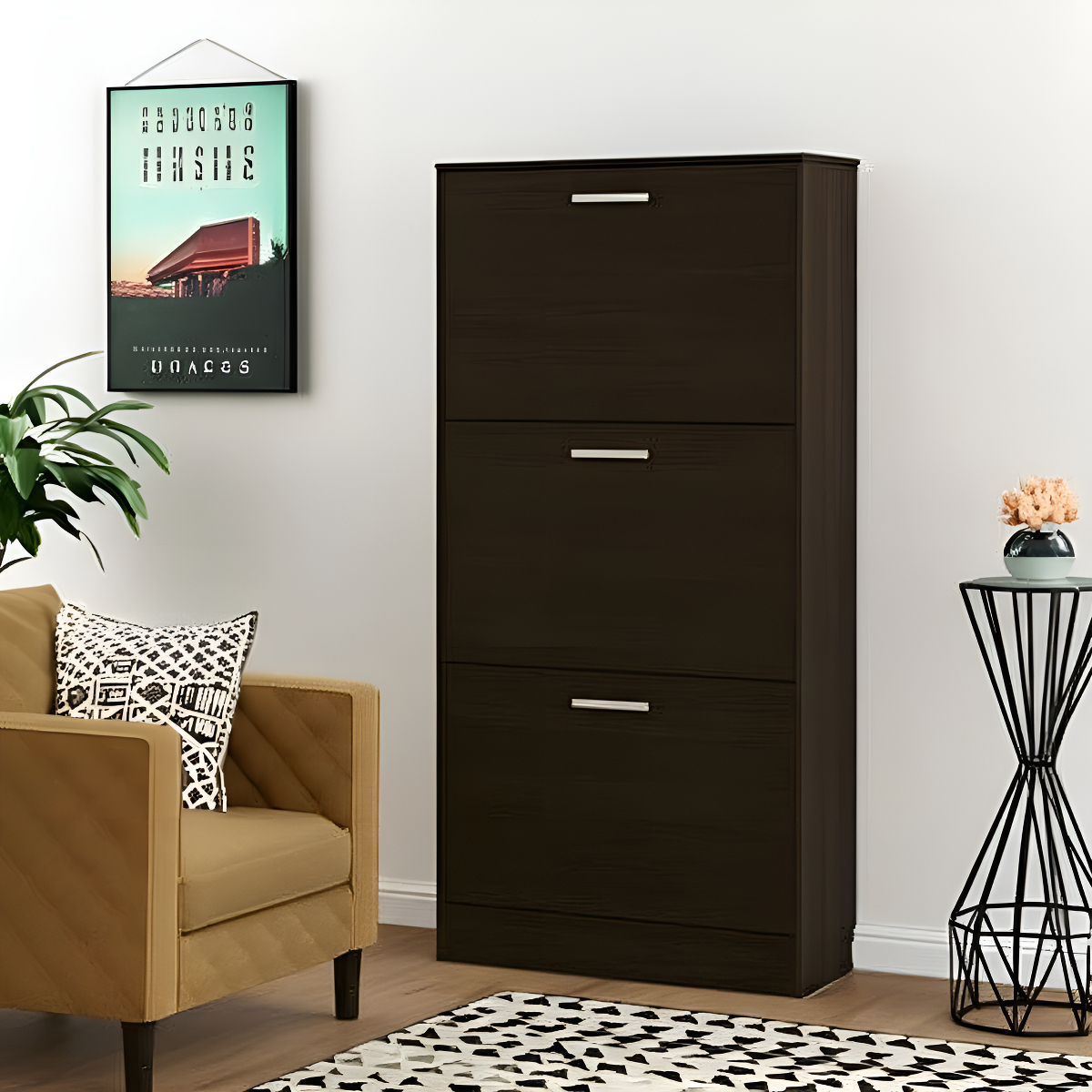 Zapatera 3 Puertas Con Fondo Que Sal Color Marrón Oscuro